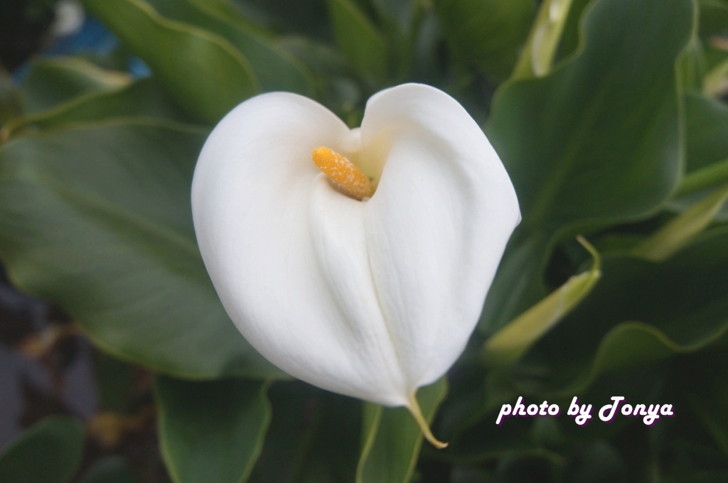 *海芋接近全開很像一個愛心,花語有兩個一個是雄偉之美另一個是潔淨的愛情,很浪漫的感覺。