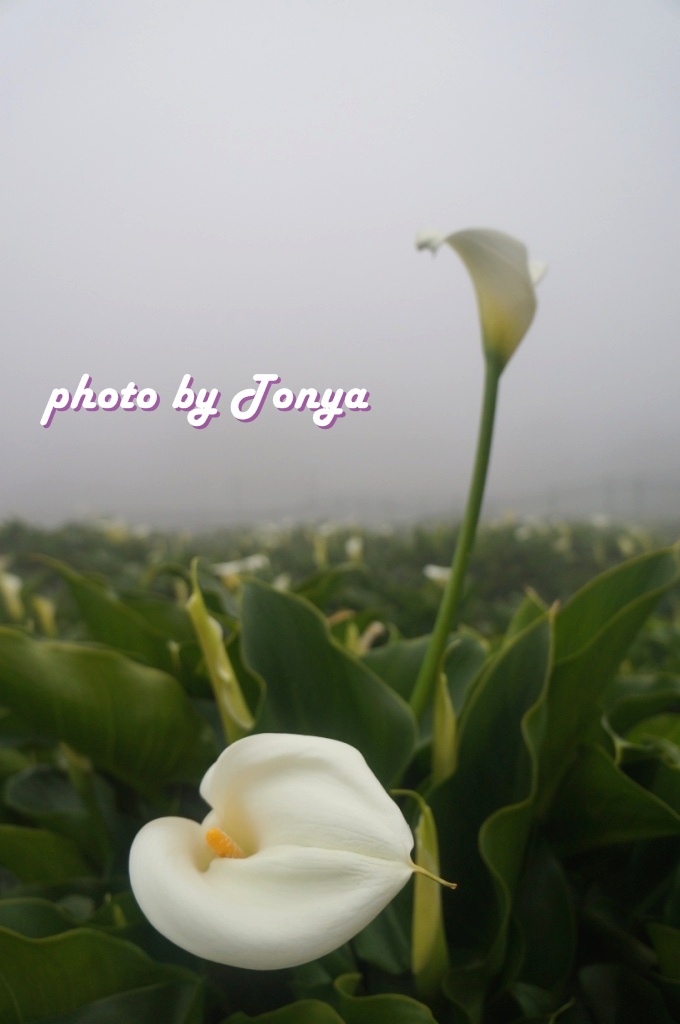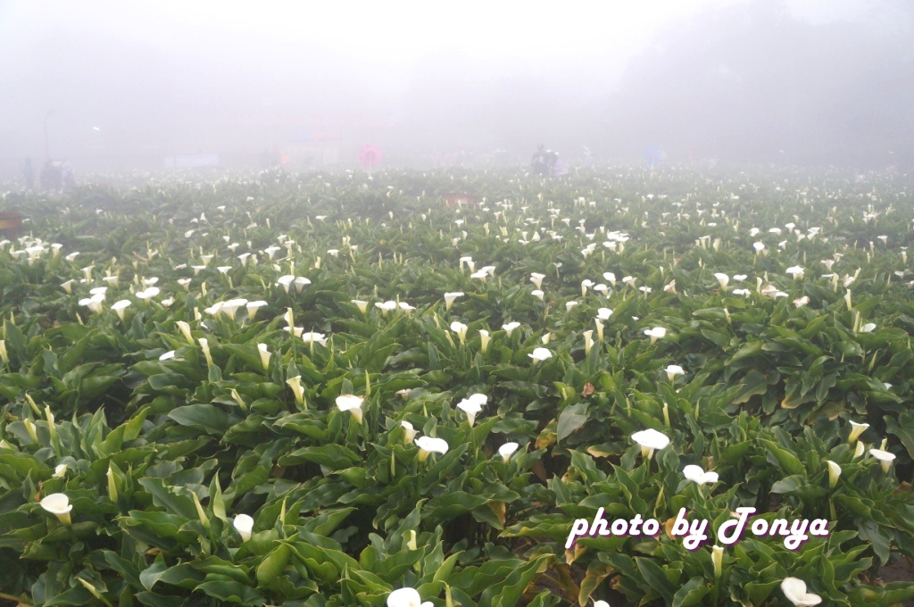 *到台北車站後搭公車約1個半小時,陽明山公園那附近塞車,到海芋田大概4點吧!剛到這裡都是霧,很濃的霧,能見度不高,照片還拍得出來霧茫茫的,就知道真的很霧。