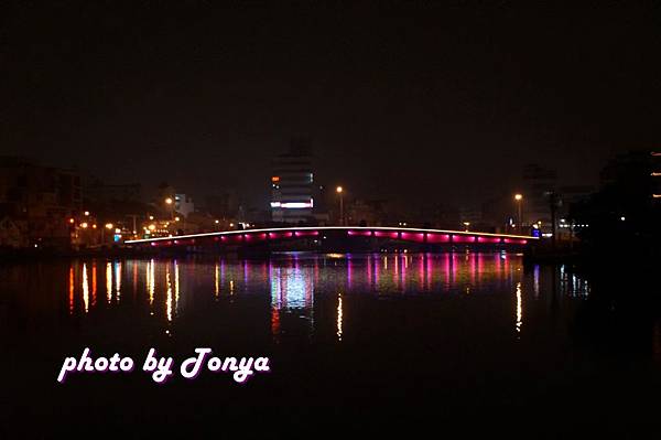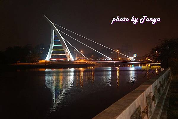 在安平回市區的路上,右手邊可看見最近夜拍新景點,躦到裡面小巷子,可以看清楚這優美的彩虹橋。