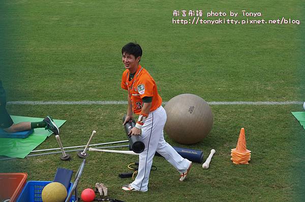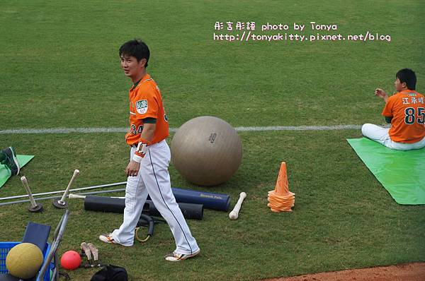 一直找不到高志綱,原來在旁邊暖身