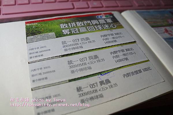 翻出收集門票的本本,除了今年,上次看球是2009年,就是打假球那年,說不定我們看的那場就有打假球,光想到這樣就不想進場了,只能說幸今年的WBC選手們的努力讓球迷重拾看球賽的熱情